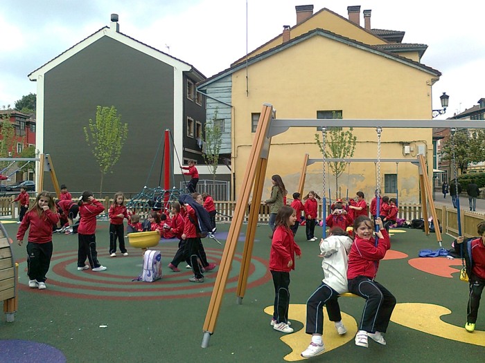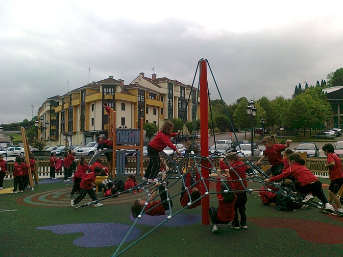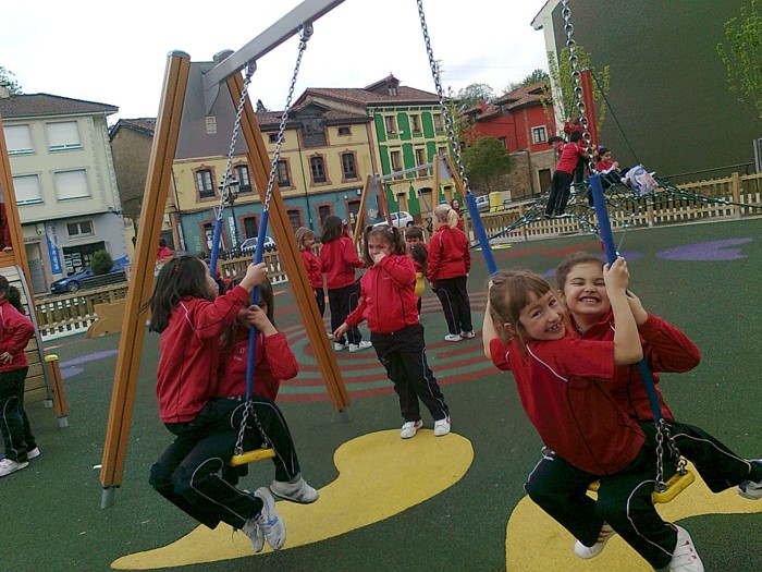 En los columpios. |