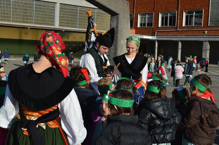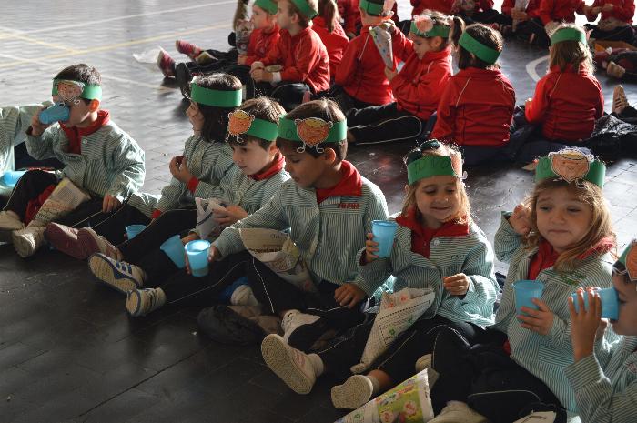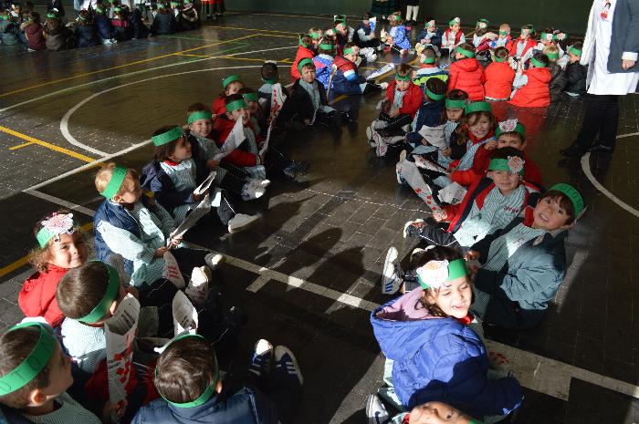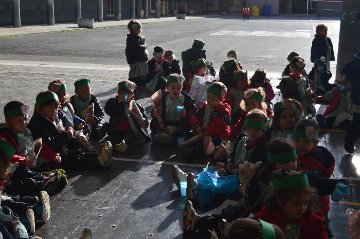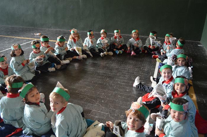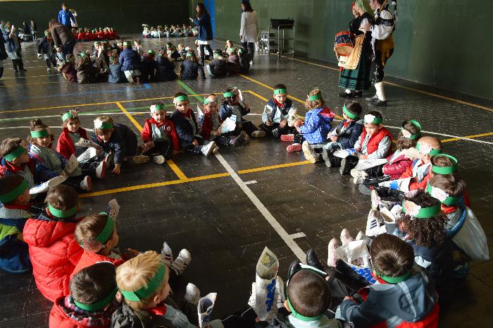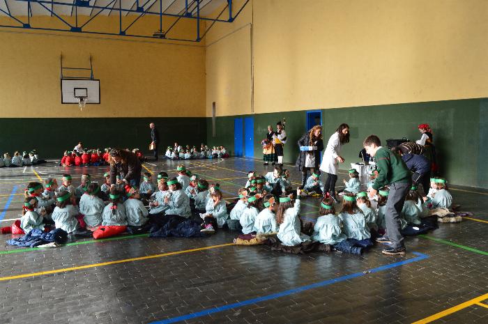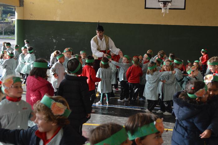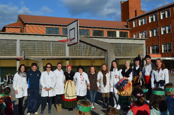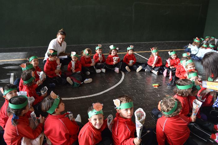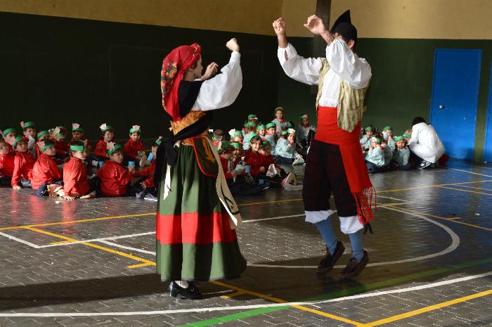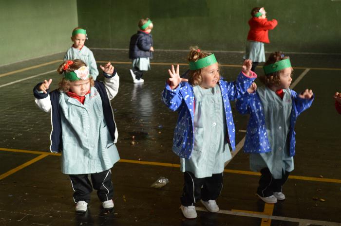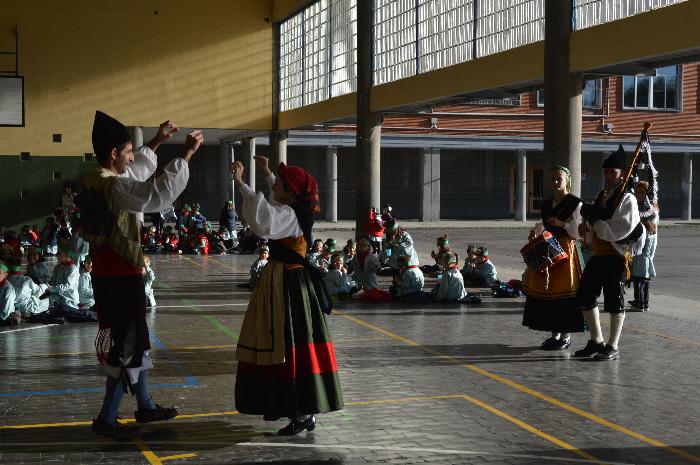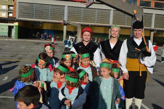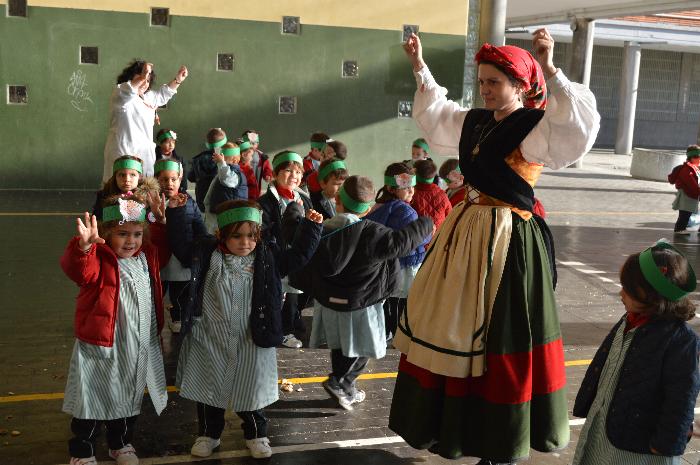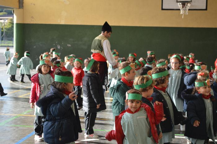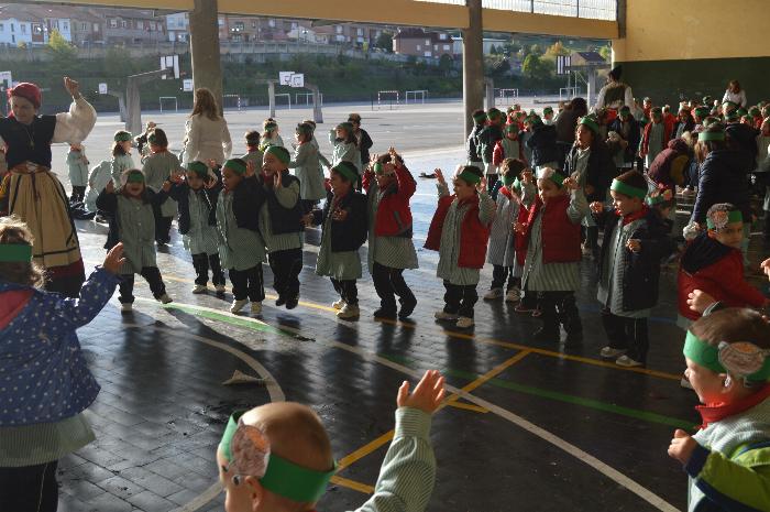 Los chicos y chicas de Educación Infantil, sus profesores, un gaitero y un tambor, junto con dos profesores que bailaron al son de la música, celebraron la fiesta en la Cancha Cubierta del cole.