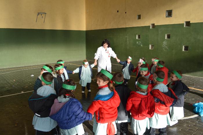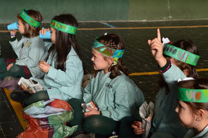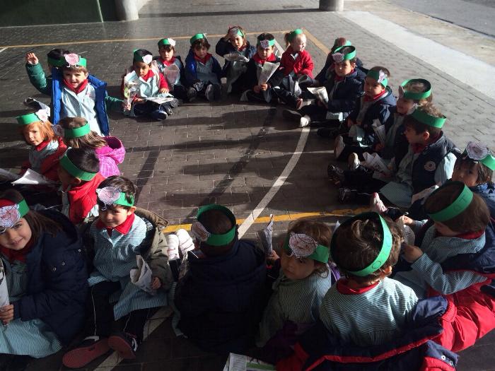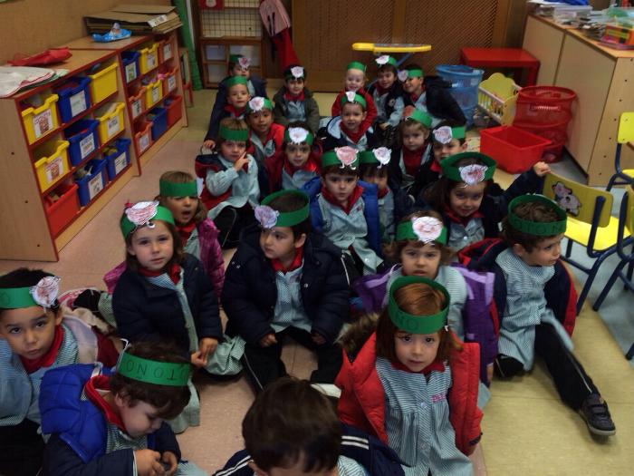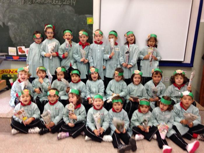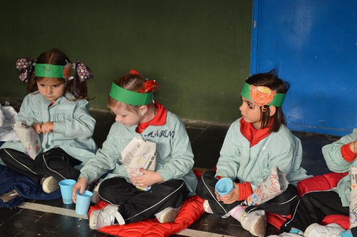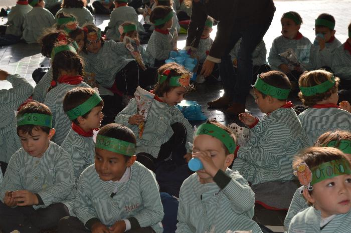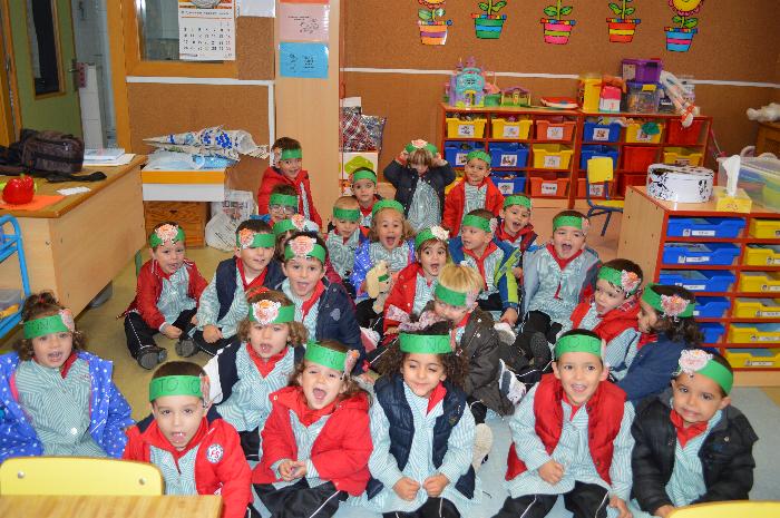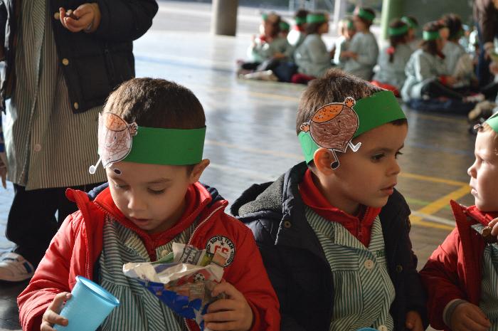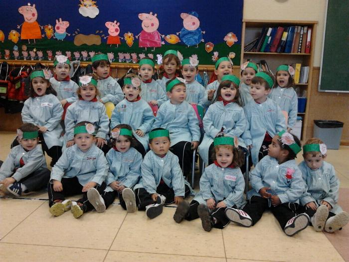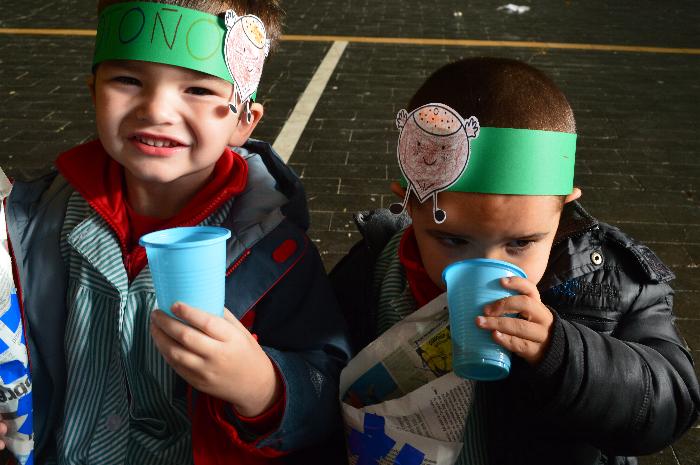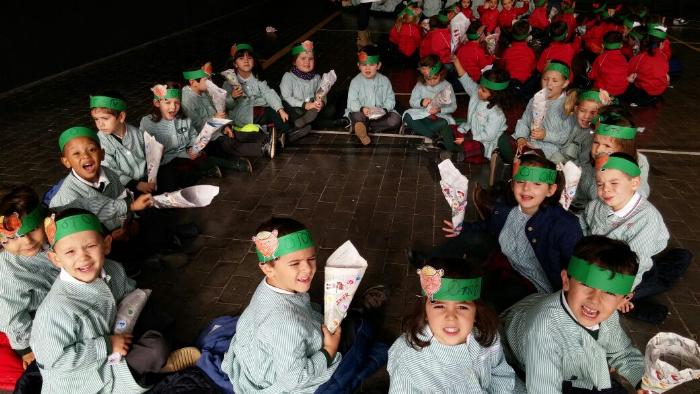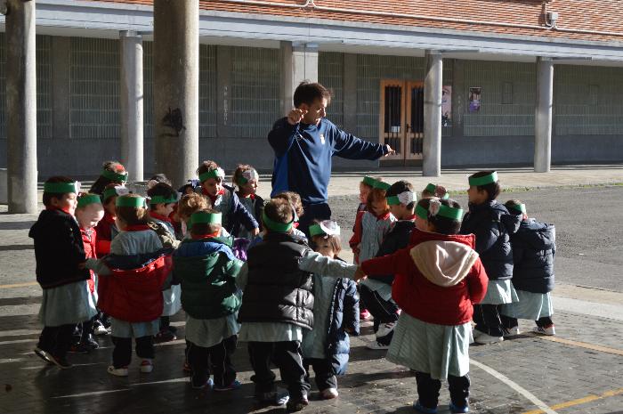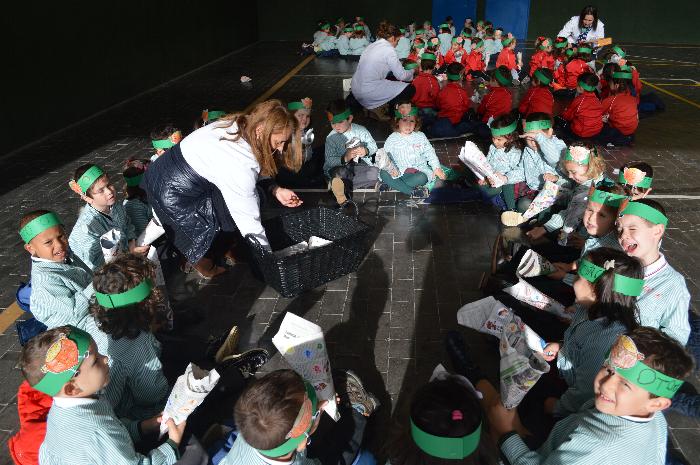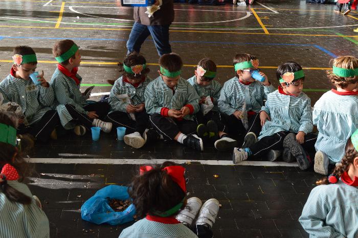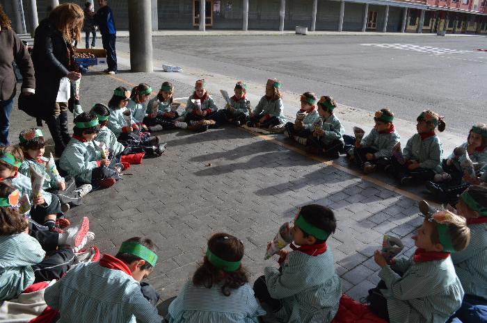 Los chicos y chicas de Educación Infantil, sus profesores, un gaitero y un tambor, junto con dos profesores que bailaron al son de la música, celebraron la fiesta en la Cancha Cubierta del cole.