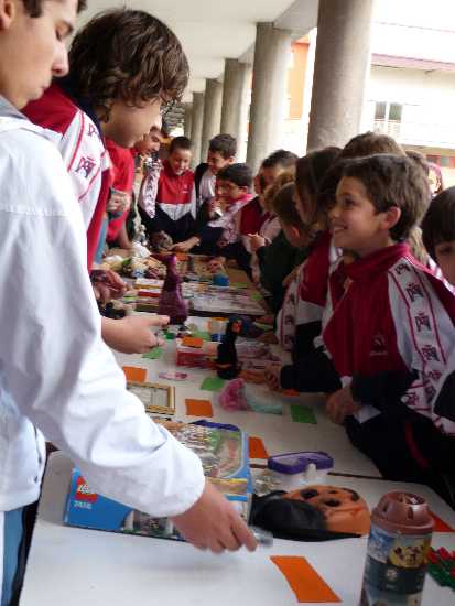 También hemos diseñado para la ocasión unos bolígrafos (modelo bic: azul y negro), personalizados con el nombre del colegio, que se pusieron a la venta por el precio de 50 céntimos/unidad. Los niños y los padres colaboraron adquiriendo algún objeto del Rastrillo que organizaron los alumnos/as de la asignatura "Empresa Joven Europea" de la ESO.
