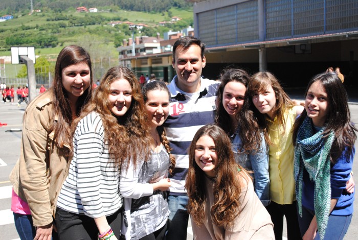 Un grupo de alumnas posando con el profesor Rey. |