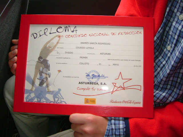 Alumno en de 2ºB de la ESO, en el curso 2006-2007, fué seleccionado entre los 24 mejores trabajos de los 657 presentados al 47º Concurso Nacional de Redacción de Coca-Cola.