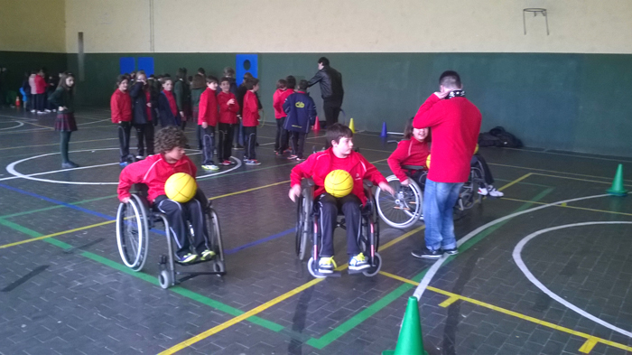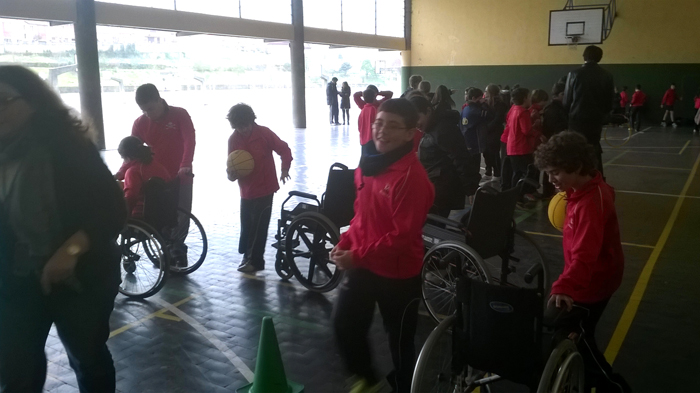 1. Nos desplazamos en unas sillas de ruedas y tuvimos la posibilidad de practicar baloncesto.