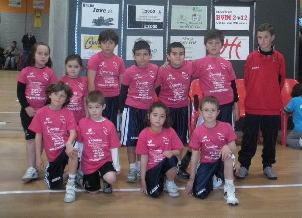 El equipo baby rosa, que juega en Caudalia el torneo organizado por el C. B. Mieres 2012 |