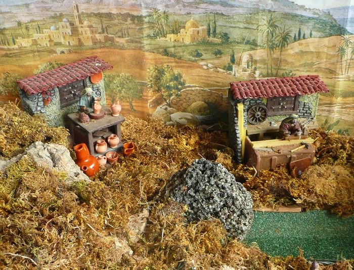 Detalle del alfarero y del carpintero trabajando para llevarse el pan a casa. |