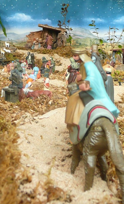 Los reyes van por el camino y al fondo ya ven el portal. |