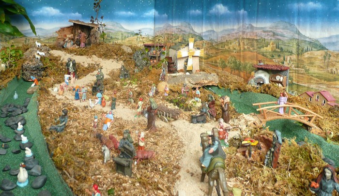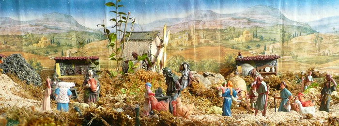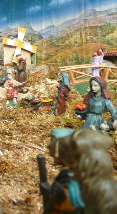 Y no queremos dejar de enseñaros un Belén que está en la Iglesia. Puesto por un grupo de señoras del barrio que proceden de Ucrania. |