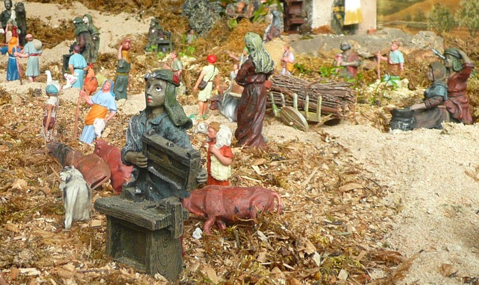 Vista parcial donde se perciben los pastores y labradores ocupados en sus quehaceres diarios. |