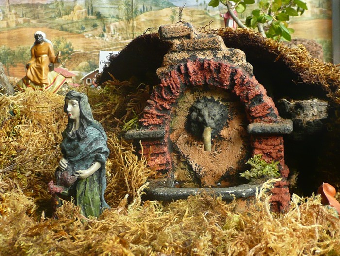 Detalle de la fuente de la que a veces mana agua. |