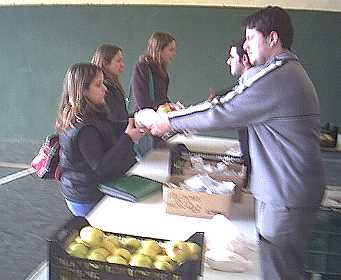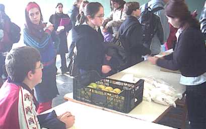 Cerca de 600 alumnos y alumnas adquirieron en los días precedentes los vales de 2 Euros, que luego se podían canjear por un bocadillo y una pieza de fruta.