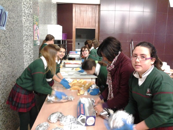 Este año las niñas de 2ºC de la ESO fueron las encargadas de continuar con la tradición de hacer los bocatas. |