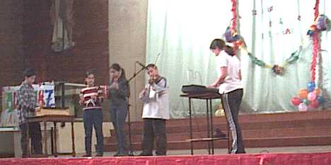 Y el Festival comenzó con un grupo compuesto por órgano, violín, pandereta, triángulo y xilófono. Ahí los vemos en plena actuación. |
