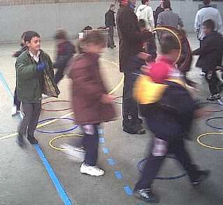 También se utilizó el polideportivo, allí nos podíamos sentar y hacer corros. |