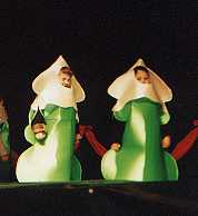 Arancha y Belinda, todos mezclados, árboles, nubes, muñecos