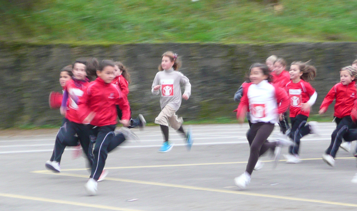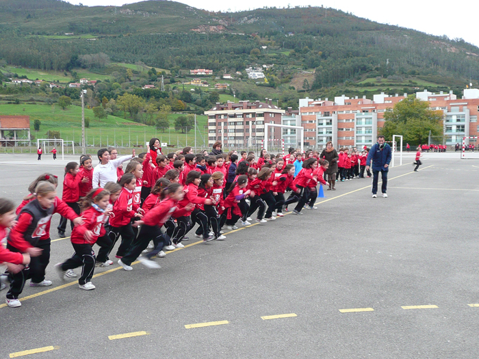 El alumnado de Primaria realizó la carrera utilizando el patio del colegio.