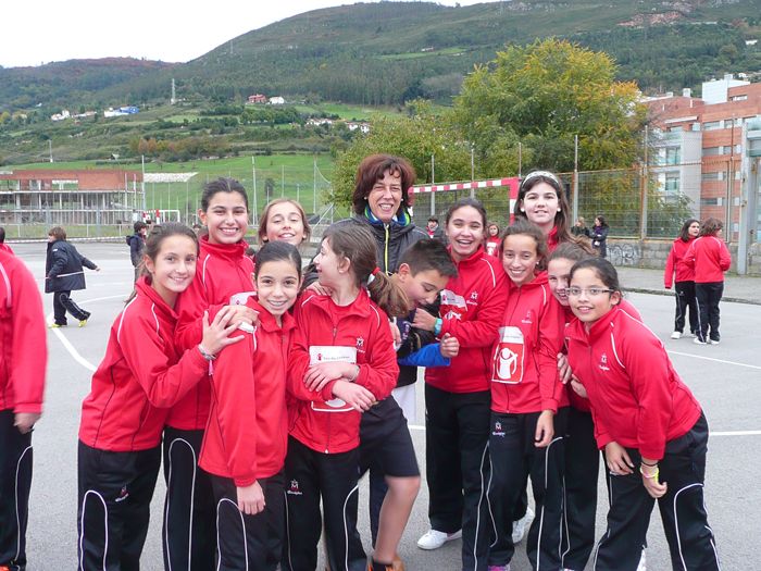 Cada uno de los alumnos y alumnas participantes, acompañados de su/sus patrocinador/es: padre, madre, abuelo, primo, amigo,..… que generosamente le pagaron el kilómetro de solidaridad que recorrió el alumno/a.