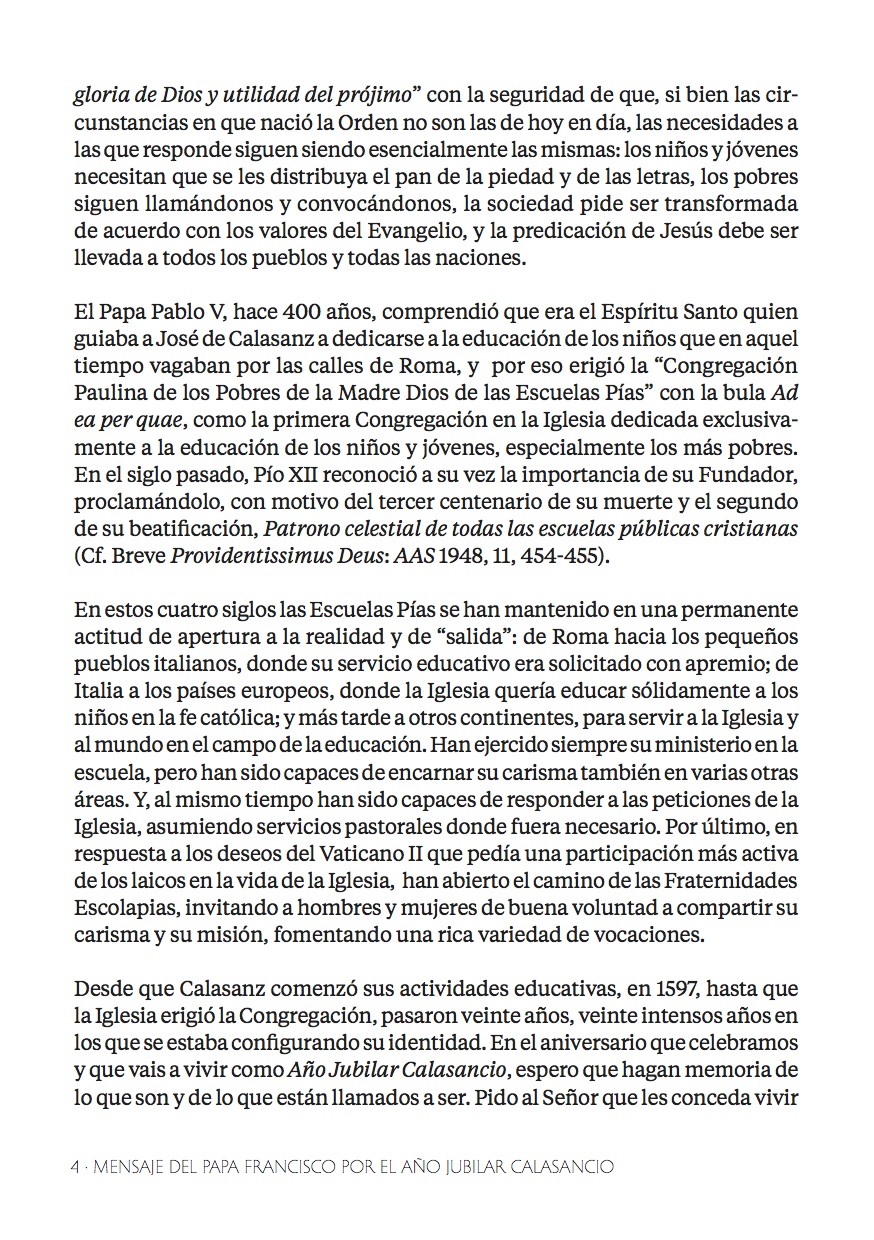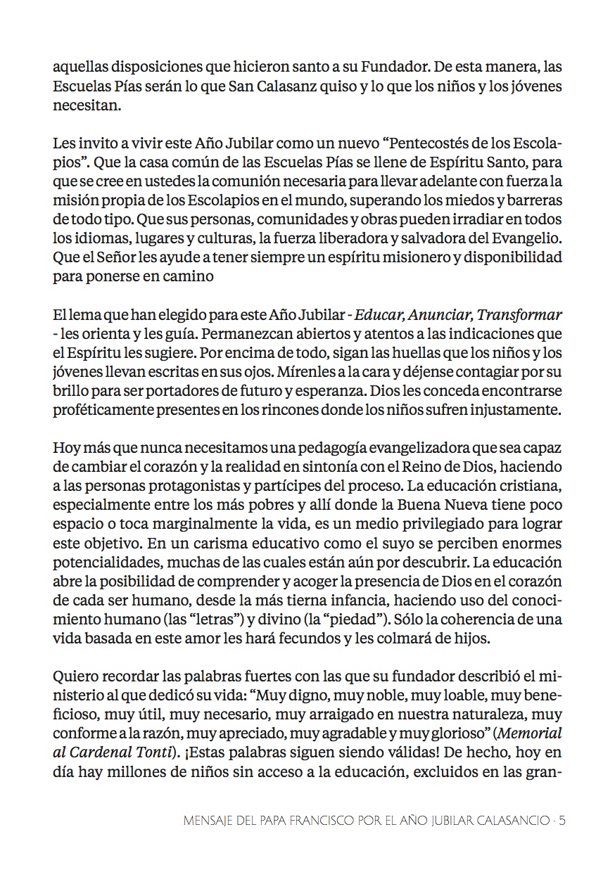 Un Año muy Escolapio, al que tanto el Santo Padre, nuestro Papa Francisco, como el P. Pedro Aguado, Padre General de la Orden; nos invitan a vivir con intensidad a todos los que formamos parte, construimos y caminamos junto a las Escuelas Pías de todo el mundo.