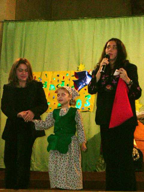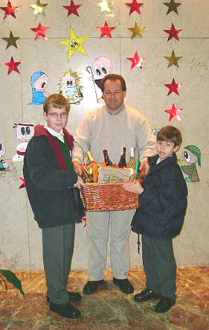 Al final del Festival de Educación Infantil se procedió a sortear la Cesta Solidaria, tal como recoje la foto superior. En la de al lado vemos a los agraciados con la cesta junto al Director del colegio en el momento de hacerles entrega del premio. ¡Enhorabuena! |