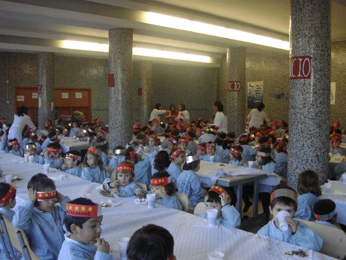 Los profesores porque saben que es un día muy especial. Todos juntos en el comedor.