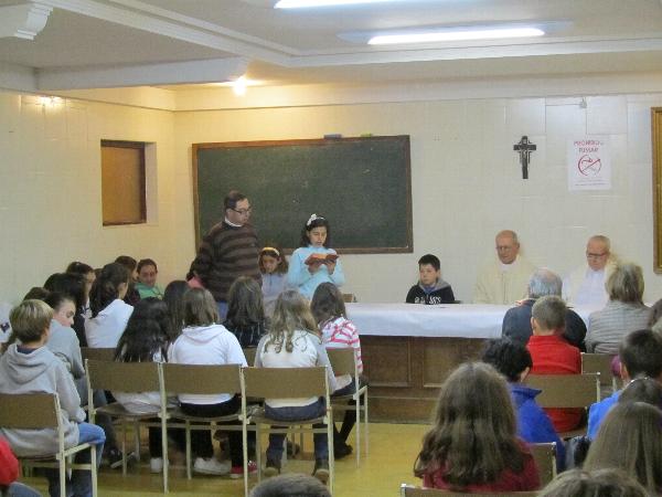 Las lecturas y las peticiones las hicieron los alumnos, con la participación de los de tercero, que se están preparando para recibir la comunión. |