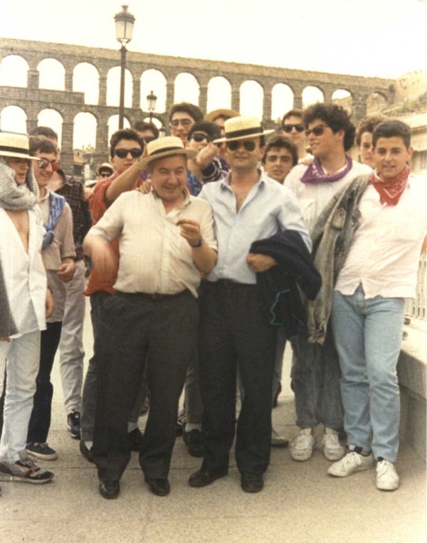 Viaje de estudios de curso indeterminado con Ovidio y Chuso, con el acueducto de Segovia al fondo.
