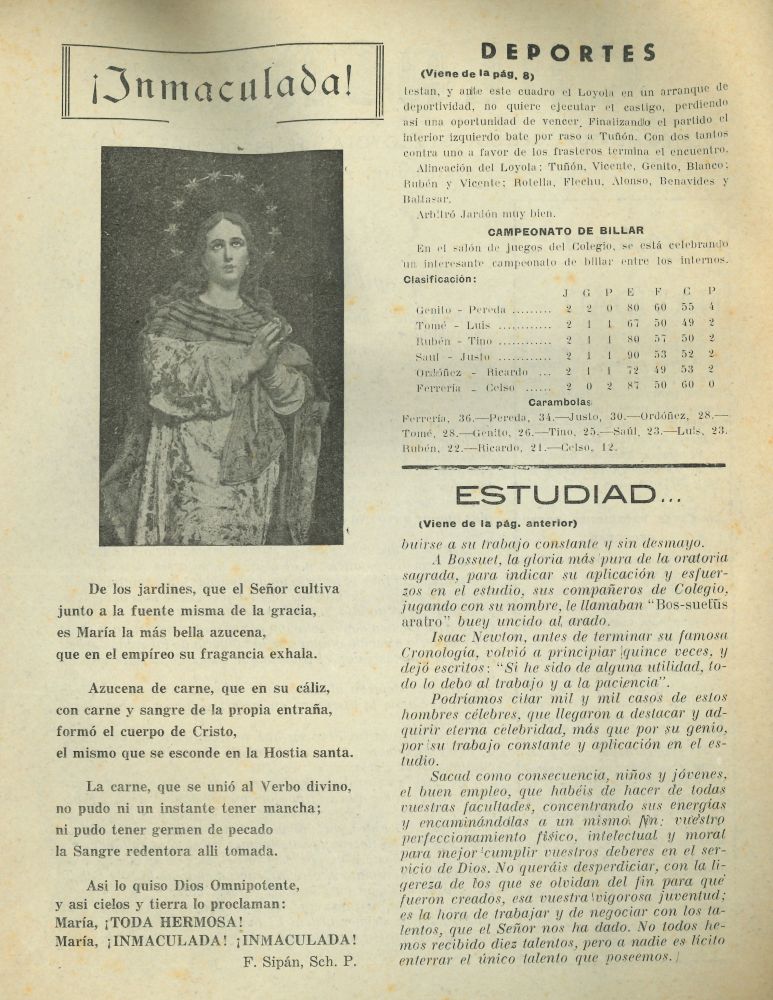 Del Boletín de Diciembre 1951