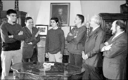 En la foto, David, el tercero por la izquierda, junto al Rector de la Universidad de Oviedo, D. Juan Vázquez.