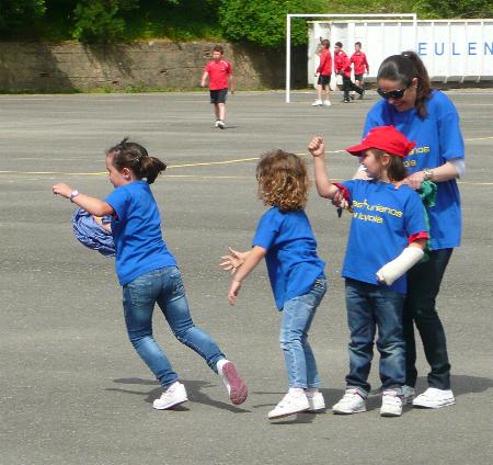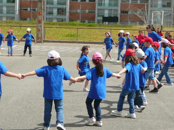 En el patio, se hicieron equipos, y participaron todos. |