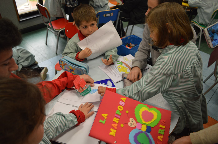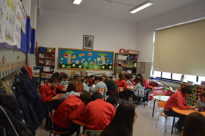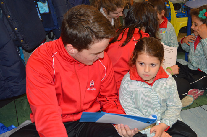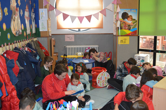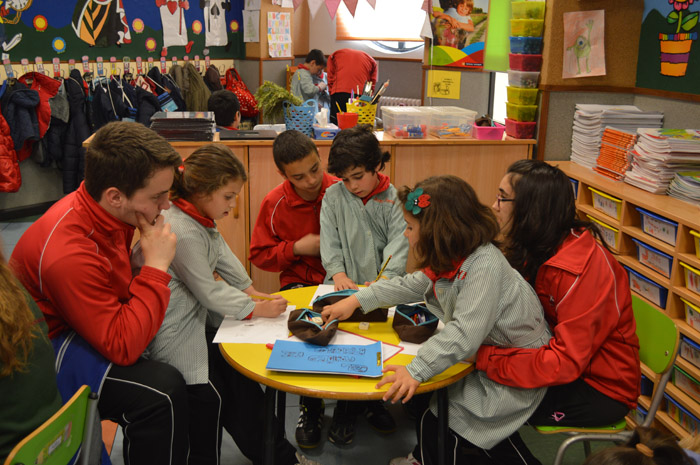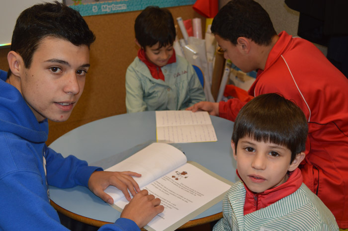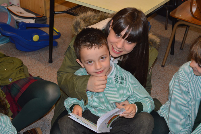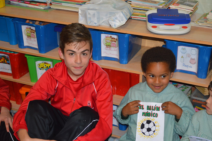 Con motivo del Día del Libro un grupo de alumnos de la ESO se acercaron a las aulas de infantil y acompañaron a los niños, enseñándoles sus libros y leyendo con ellos algunos pasajes.