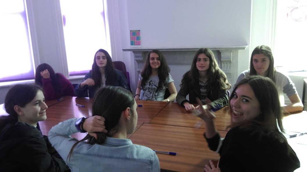 En la foto un grupo de alumnas en un aula después de hacer la prueba de nivel.