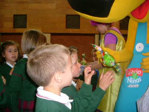 Tras la entrega de caramelos y chucherías, siguió la fiesta en el patio, en la cancha cubierta, donde hubo pinchos para todos.