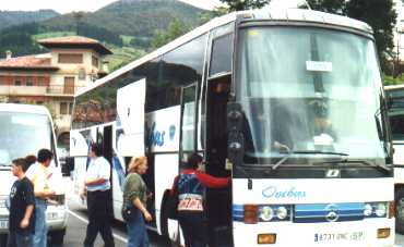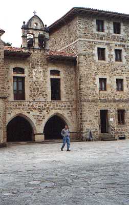 Arriba subiendo al autobús tras el Cocido Lebaniego, en Potes Al lado el Monasterio de Santo Toribio de Liébana |