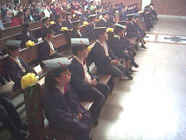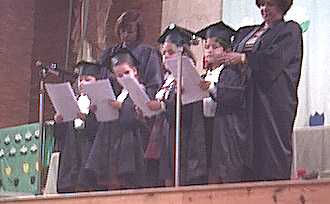 El sábado 15 de junio de 2002, se realizó el acto de la Graduación de los niños y niñas de 5 años, que el próximo curso pasan ya, a una nueva etapa, la Educación Primaria. Este acto, sencillo, cuenta con la ayuda y empuje de la Asociación de Padres, y con el trabajo de un grupo de madres que en los días anteriores prepararon las túnicas de los niños y niñas que se graduaban. |