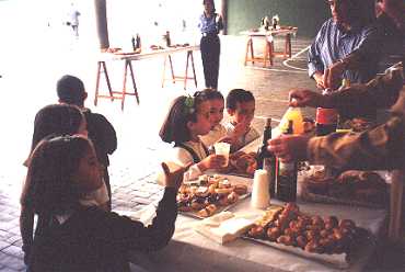 La parte "seria" del acto acabó, pero en la cancha cubierta, todos los asistentes tenían preparada una gran mesa llena de viandas que los propios padres de los niños habían aportado. ¡Enhorabuena a todos! |