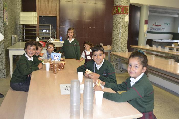 Los primeros en llegar son los que vienen a la Guardería, algunos desde las 7 y media de la mañana. El comedor ya estaba preparado para recibir a los que desayunan en el cole.