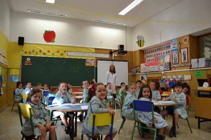 Y los niños de 4 años A con Dolores en su clase.