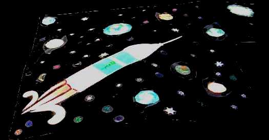 Buscaron por todas partes y después de un día completo no lo encontraron. Se reuniron preocupados y de repente a la tortuga Tatú se le ocurrió un idea. ¡Buscamos en todos los sitios menos en el Espacio! ¿y cómo podemos ir? El Mago Cirelón con sus poderes construyó una nave espacial, se subieron en ella y en 3 minutos ya estaban entre las estrellas y los planetas de colores... |
