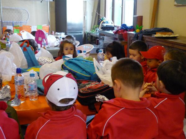 Y todos a la mesa nos dispusimos, tranquilamente a comer nuestros bocadillos. |