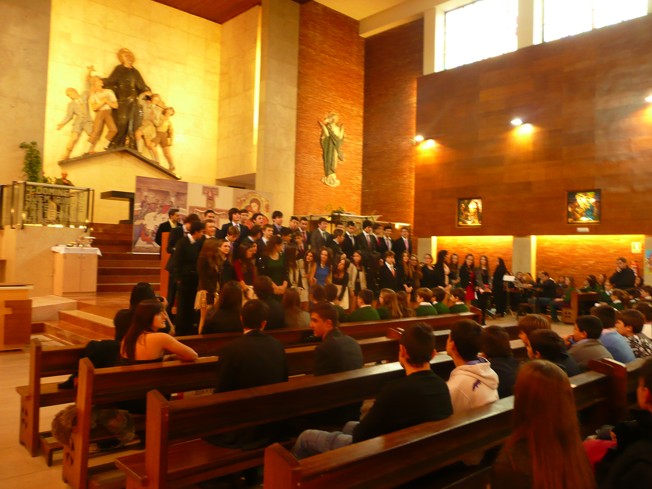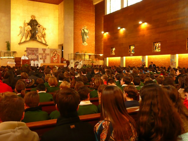Es muy posible que alguno de los que hoy se sientan como alumnos en esta celebración dentro de algunos años estén también aquí, como profesores o formando parte del personal del colegio, participando en la obra de Calasanz, siguiéndole. |