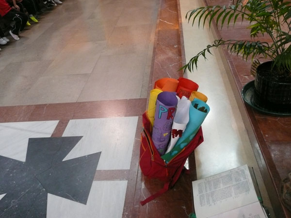 En fila salimos de nuestro sitio para ofrecer distintas cosas.