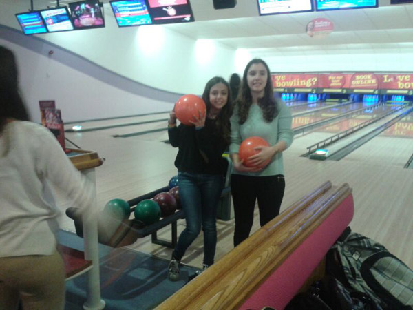 A las 14:35 h están jugando a los bolos hasta que llegue la hora de que los british acaben las clases a las 16:00 h.