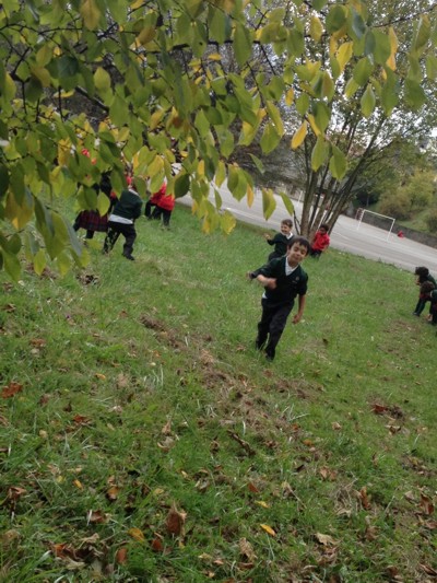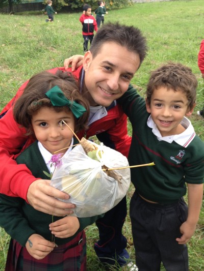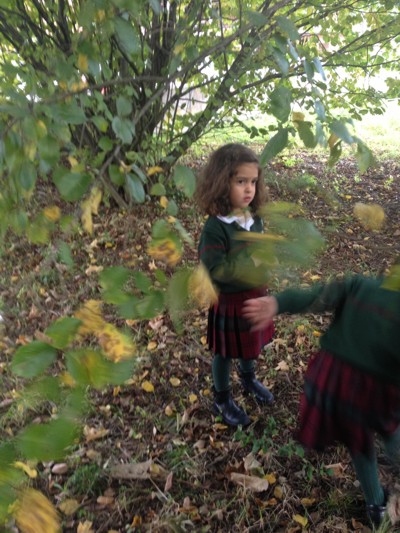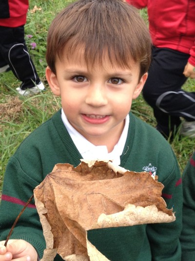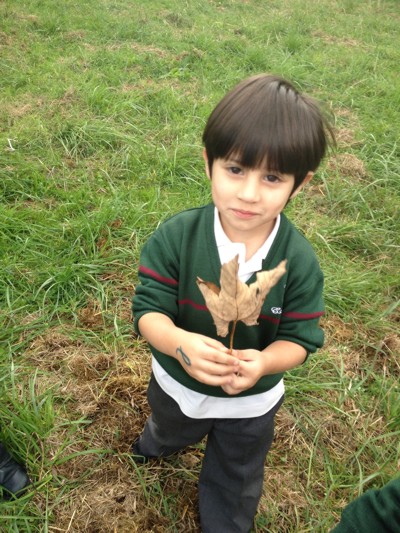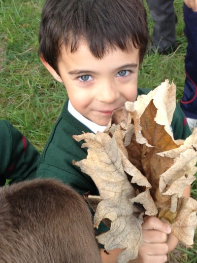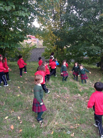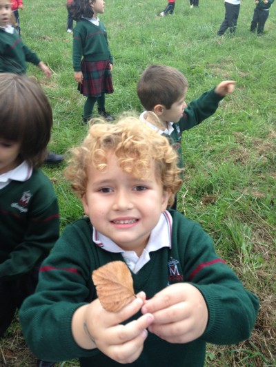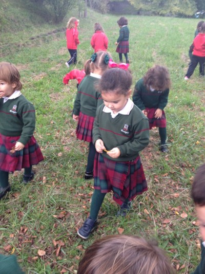 Los niños de 4 años se fueron a un lejano bosque asturiano a recoger hojas del suelo. |
