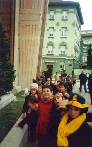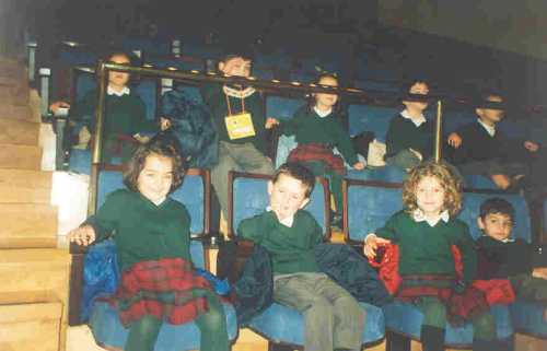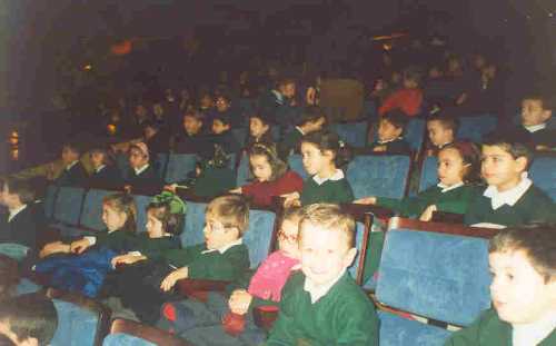 Por fín entramos, la función empieza. Un montón de colegios empiezan su representación. Nosotros muy serios y formales atendemos sin perder detalle. Nos hablan de la Paz.