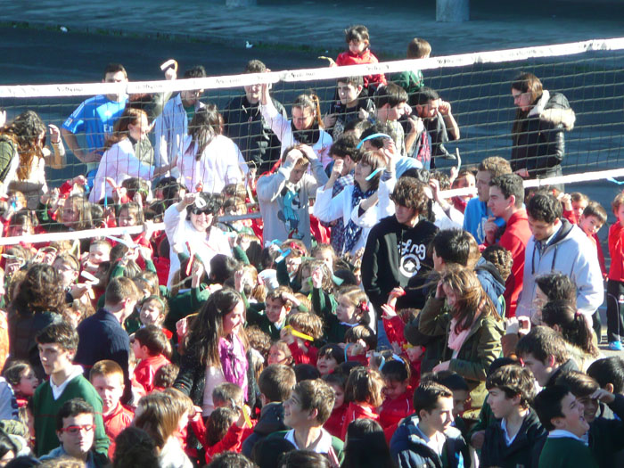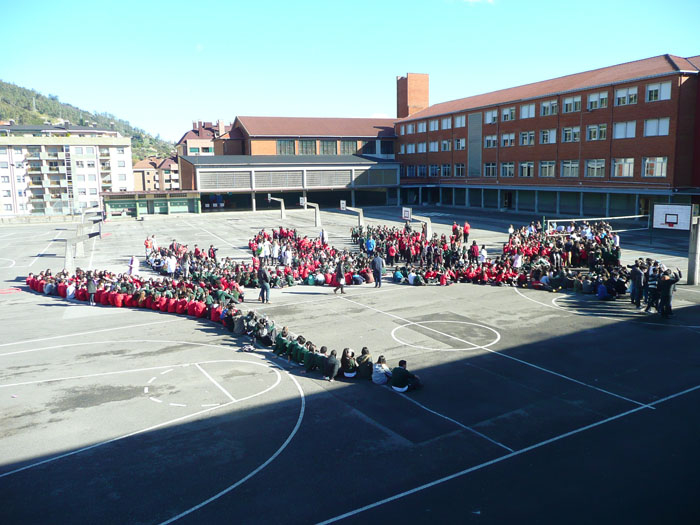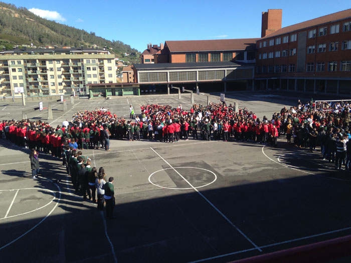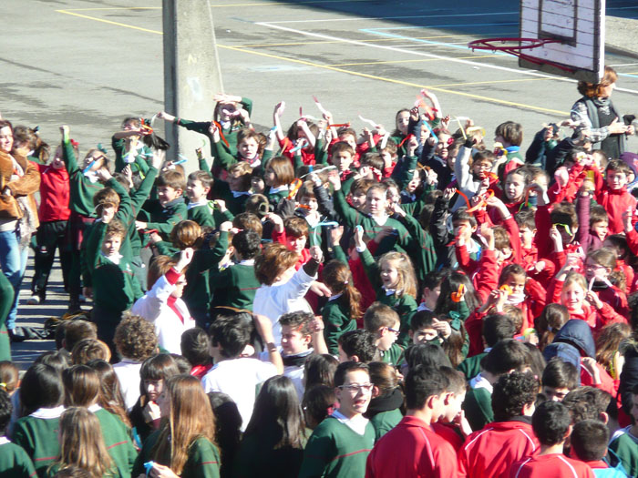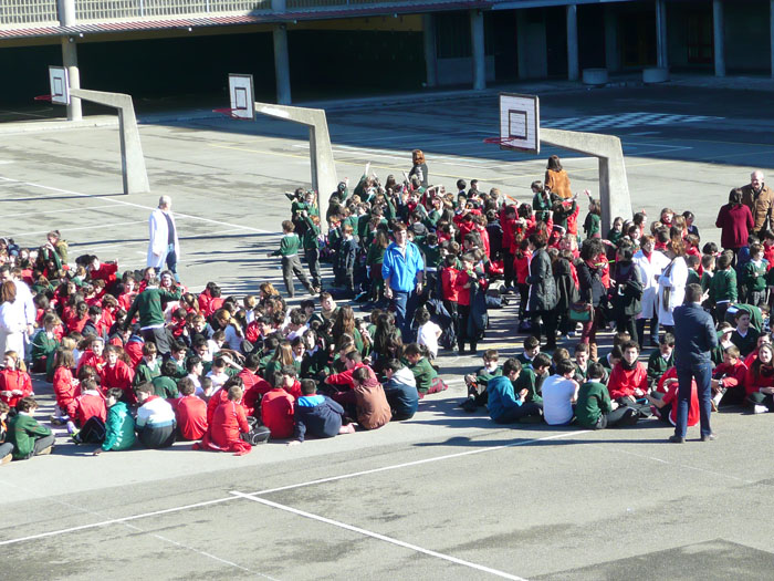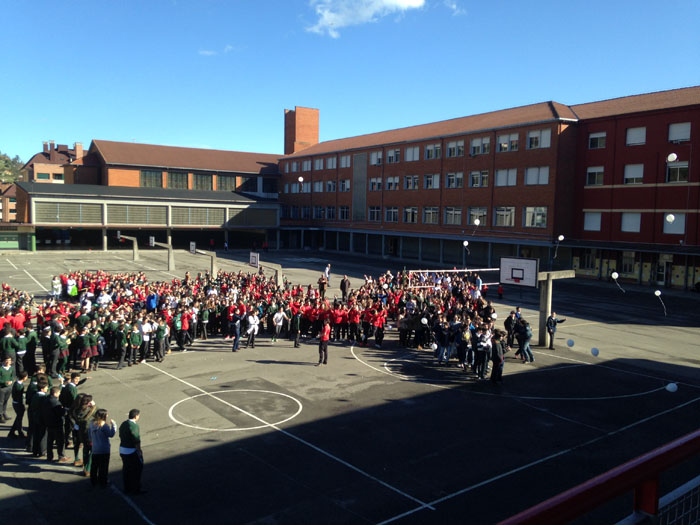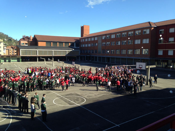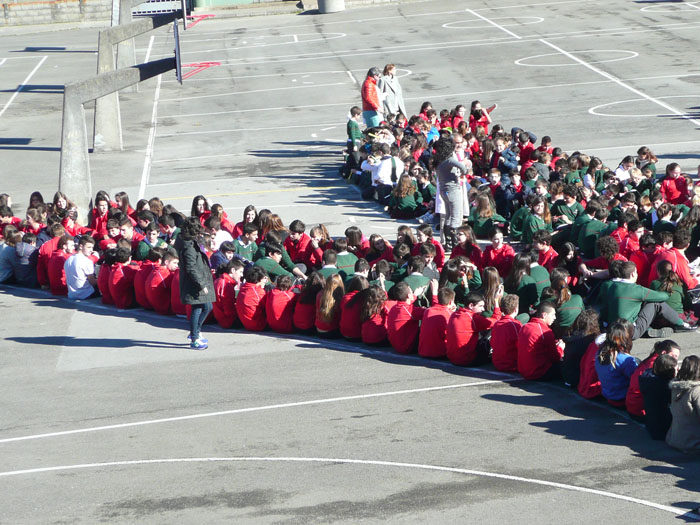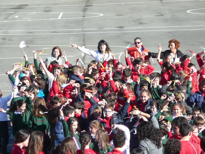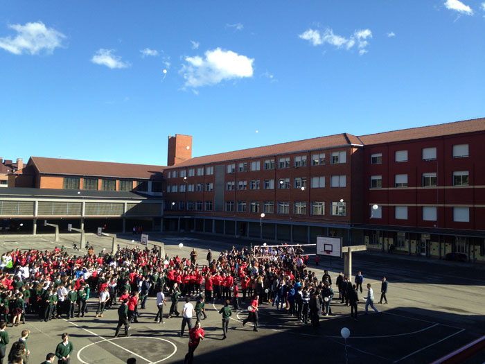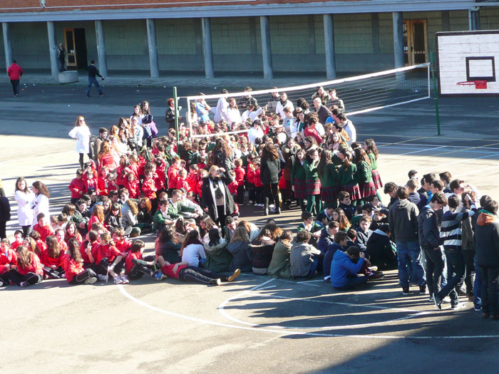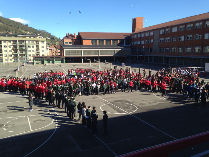 En el patio se reunen todos los alumnos del colegio para la celebración del Día de la Paz.