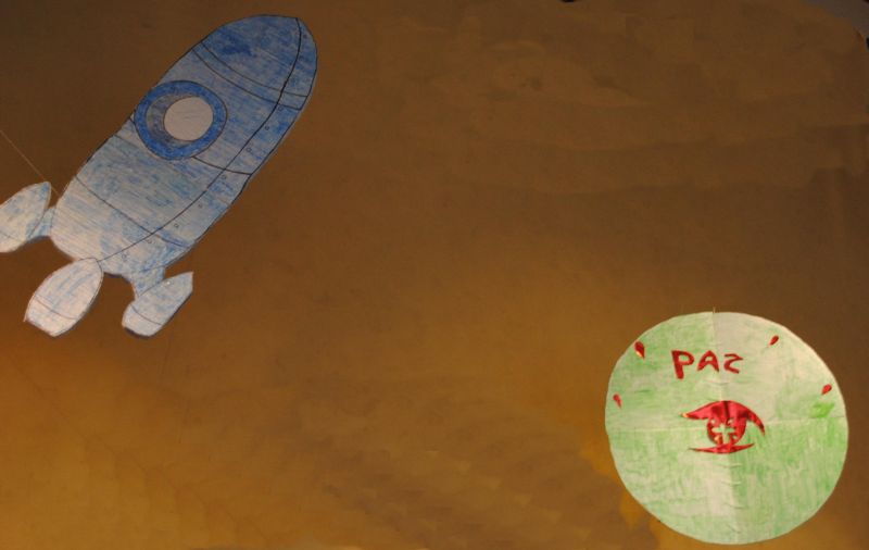 Y claro a la vuelta de su viaje espacial, los profesores invitan a sus alumnos a imitar a los perdamanicos y así construir aquí, en nuestra Tierra, un Mundo en Paz.