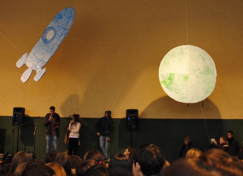 Y allá se fueron los profesores montados en la nave espacial MIR (Paz en Ruso)