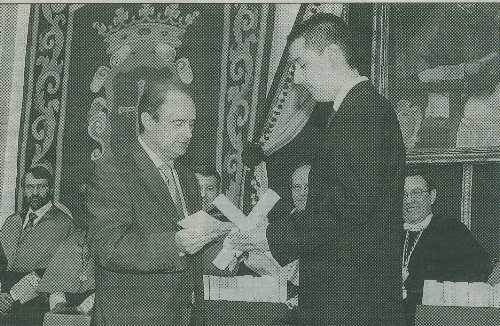 Pedro, antiguo alumno del colegio, recogió su premio "Santiago Gascón" de la Facultad de Medicina, patrocinado por La Campana, en la licenciatura de Bioquímica.