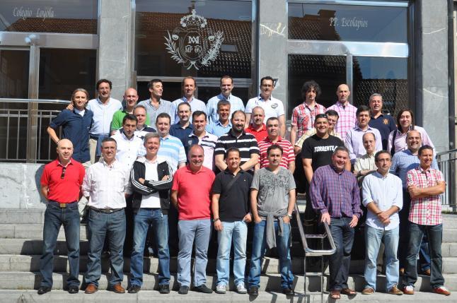Reseña en La Nueva España (8-7-2012) Emotiva celebración del 25.º aniversario de la promoción de 1987 del Colegio Loyola Los alumnos del Colegio Loyola de la promoción de 1987 (nacidos mayormente en el año 1969) celebraron el 25.º aniversario de la finalización de sus estudios en dicho centro durante el día de ayer recordando infinitas anécdotas acumuladas en más de dos lustros, con actividades deportivas y una cena de confraternización. Precisamente uno de los compañeros de promoción, José Ángel Rey Díaz, actualmente docente del centro, ejerció de cicerone en la visita matinal, en la que se incluyó un emocionado homenaje junto al padre Damián a los compañeros y profesores tristemente desaparecidos, casos de César Coto Marrón, Miguel Jesús Domingo Álvarez, Fernando Álvarez Morís, José García Olaya, hermano Manuel, hermano Antonio, padre Imás, padre Apolinar, padre Salsamendi, Jesús Espías, Lorenzo Arcay, Juan Rubio, Luis Velasco, César y Constantino. Han pasado unos años y volvemos a posar en el mismo sitio. Algo de pelo menos, alguna falta... pero seguimos siendo los mismos. |