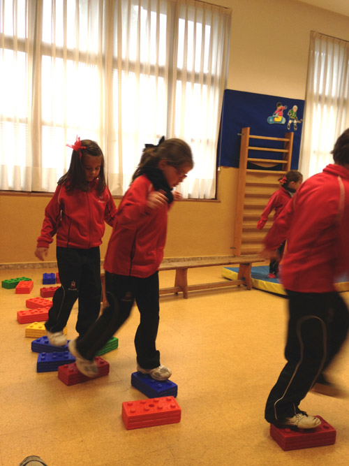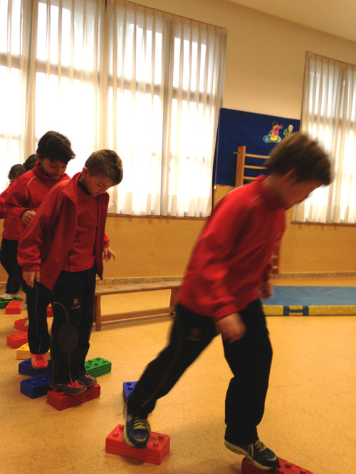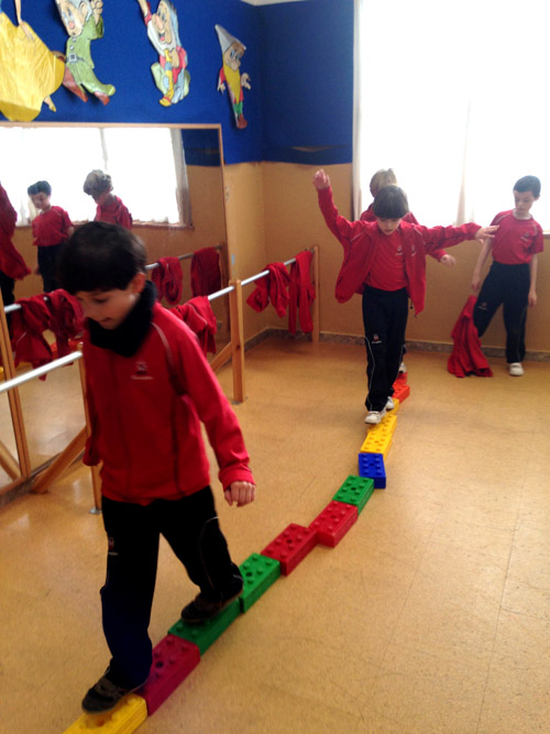 Caminamos sobre bloques, cuidando el no salirse.
