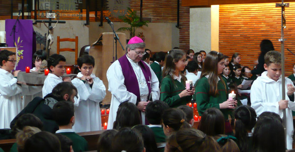 A las 15:30 h. se realizó en la Iglesia del Colegio el tradicional Vía Crucis, que en esta ocasión guió Mons. Juan Antonio Menéndez.